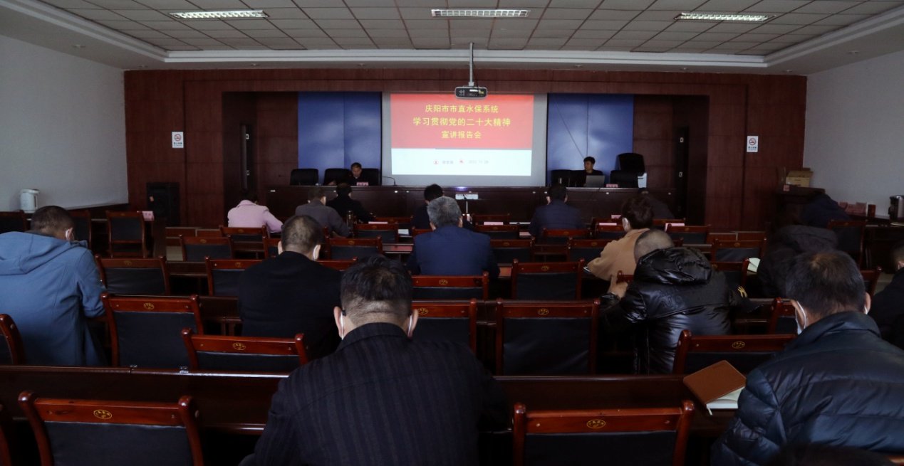 本站訊 ?11月28日,慶陽(yáng)市水保局邀請(qǐng)隴東學(xué)院馬克思主義學(xué)院黨總支書記、副教授、慶陽(yáng)市委宣講團(tuán)成員、南梁干部學(xué)院特聘教授謝學(xué)旗同志,為市直水保系統(tǒng)作題為“新時(shí)代新征程堅(jiān)持和發(fā)展中國(guó)特色社會(huì)主義的政治宣言和行動(dòng)綱領(lǐng)”的黨的二十大精神學(xué)習(xí)教育專題講座。市水保局總工程師胡中生主持并講話,市水保局、市水保監(jiān)測(cè)分站、市水??茖W(xué)試驗(yàn)推廣站全體干部職工共80多人聆聽了講座。
